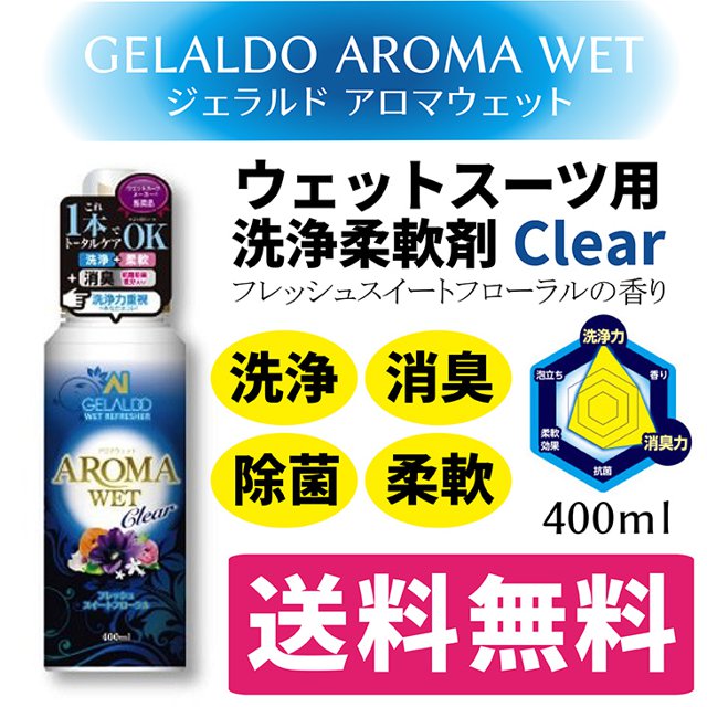 ジェラルド アロマウェット クリアー400ml×2本セット ウェットスーツ 洗剤 柔軟剤 ダイビング サーフィン ウエットスーツ GELALDO AROMA WET アロマウエット