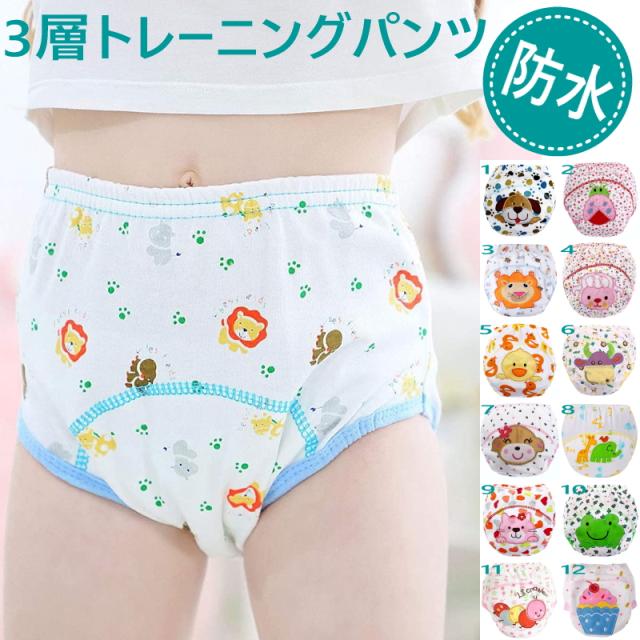 トレーニングパンツ 4枚組 3層 防水 ベビー キッズ 男の子 女の子 オムツ外れ応援 トイレ トレーニング 下着 トレパン 吸水性良い 可愛い 綿100% 80 90 100 cm