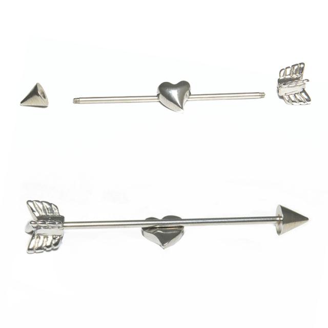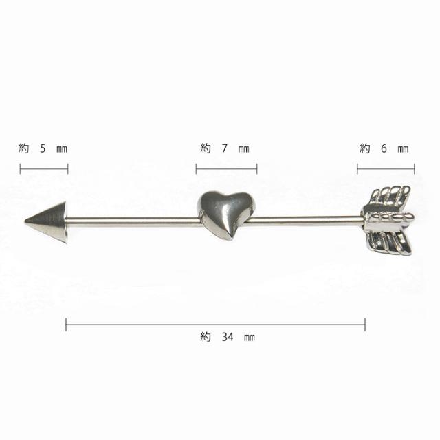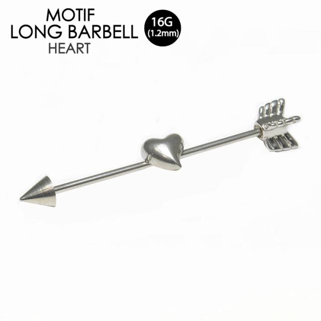 【メール便対応】ボディピアス ロングストレートバーベル -2 ハート モチーフ 16G (1.2mm) ジュエル サージカルステンレス316L【軟骨 インダストリアル スタンダード】┃