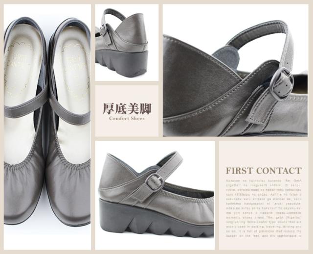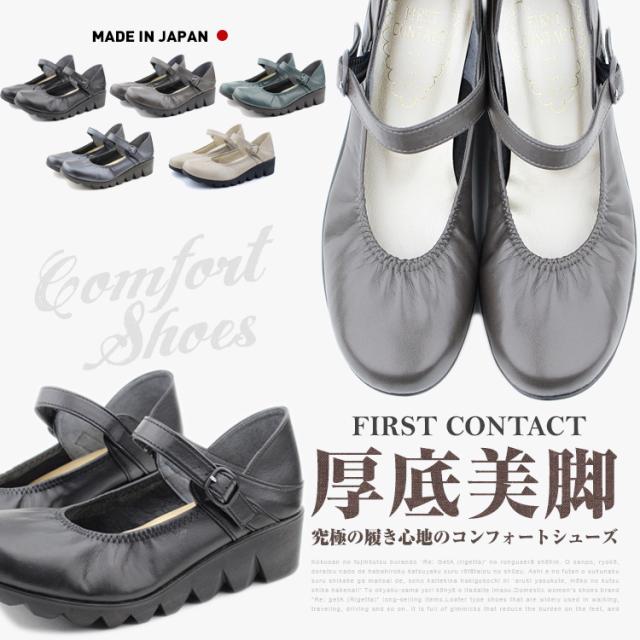 【送料無料!!】 First Contact ファーストコンタクト 厚底カジュアルシューズ 日本製 美脚 カジュアル ウェッジパンプス エナメル ワンストラップ 4.5cmヒール パンプス コンフォートシューズ 39056 パンプス シューズ