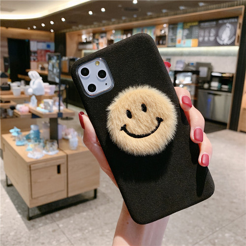 LAZA 【ブラック】iPhoneケース マイクロファイバー ニコちゃん スマイル ふわふわ かわいい