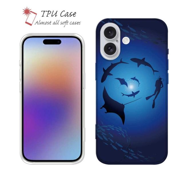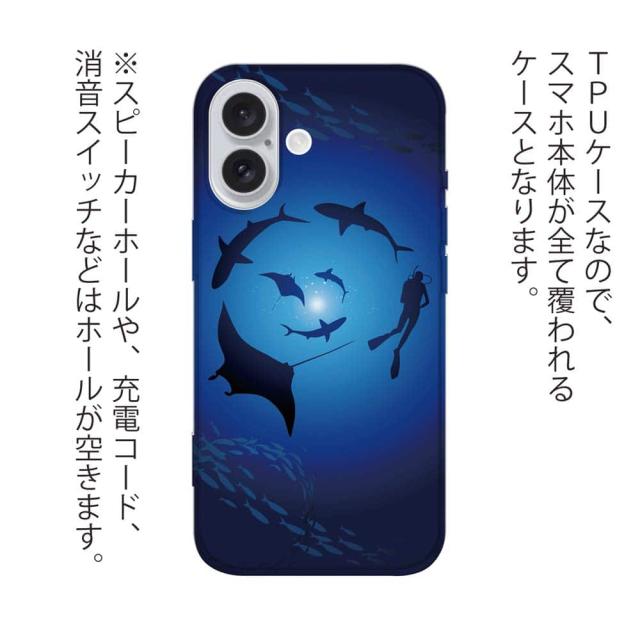 | 商品説明 | 落下や衝撃に強いTPUケース。ケースに直接プリントしてお届け。ダイバーがマンタやサメと円を描くように遊泳している風景。深い深い海の様子を美しいイラストで楽しんでください。 |