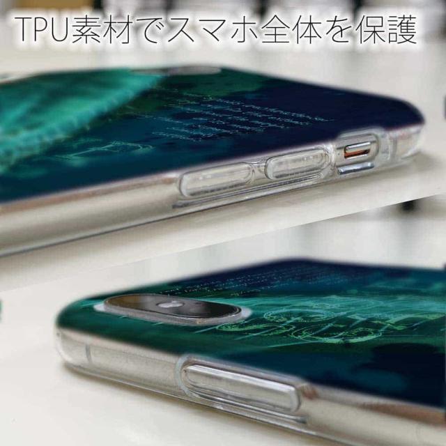 | ケースの素材について | 側面はゴムのように柔らかいTPU素材で、スマホ本体を守ります。万が一の落下でもケースが割れることがなく、耐久性の高いケースとなります。クリア(透明)のTPUケースにプリントしていますので、スマホ本体のカラーを活かしながらデザインケースが楽しめます。 |