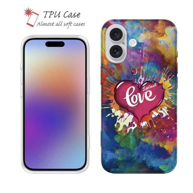 ソフトケース iPhone17 Pro Max iPhone Air クリアケース iPhone16e Pro Max iPhone15 Pro Max iPhone14 Plus iPhone13 mini Xperia 10 VII Galaxy AQUOS sense arrows Pixel10 Pro XL 愛 ペンキ ペイント カラフル 派手 かわいい クリア Splash Love