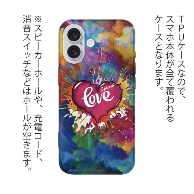| 商品説明 | 落下や衝撃に強いTPUケース。ケースに直接プリントしてお届け。カラフルなペンキペイントの中心には、スプラッシュなハート模様。弾けた愛のあるデザイン。 |