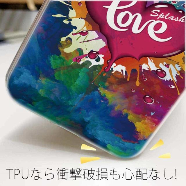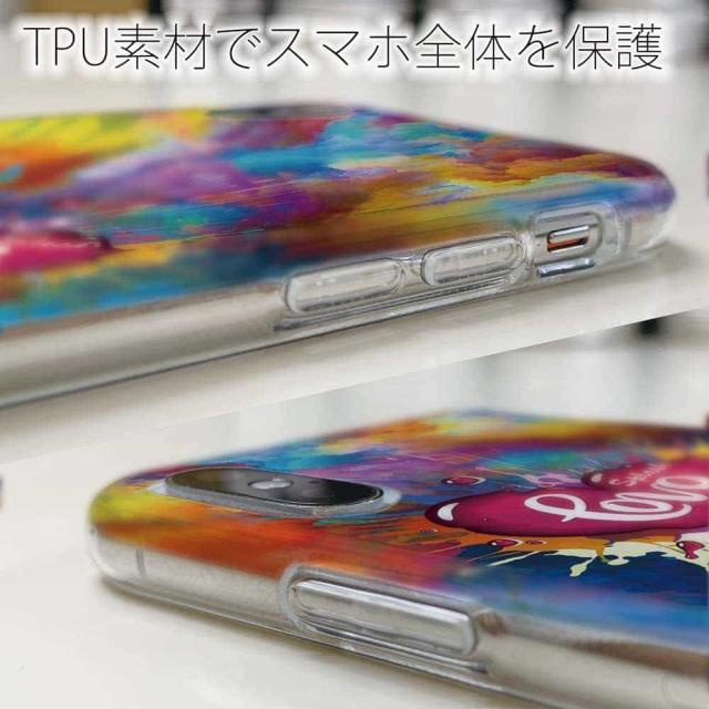 | ケースの素材について | 側面はゴムのように柔らかいTPU素材で、スマホ本体を守ります。万が一の落下でもケースが割れることがなく、耐久性の高いケースとなります。クリア(透明)のTPUケースにプリントしていますので、スマホ本体のカラーを活かしながらデザインケースが楽しめます。 |