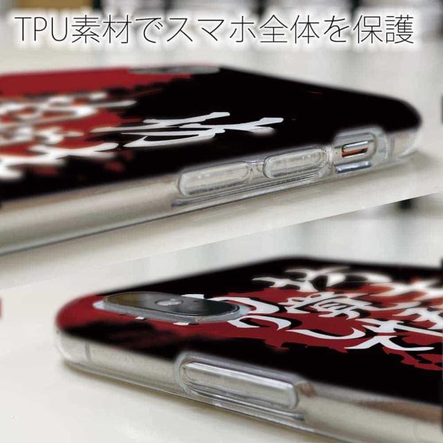 | ケースの素材について | 側面はゴムのように柔らかいTPU素材で、スマホ本体を守ります。万が一の落下でもケースが割れることがなく、耐久性の高いケースとなります。クリア(透明)のTPUケースにプリントしていますので、スマホ本体のカラーを活かしながらデザインケースが楽しめます。 |