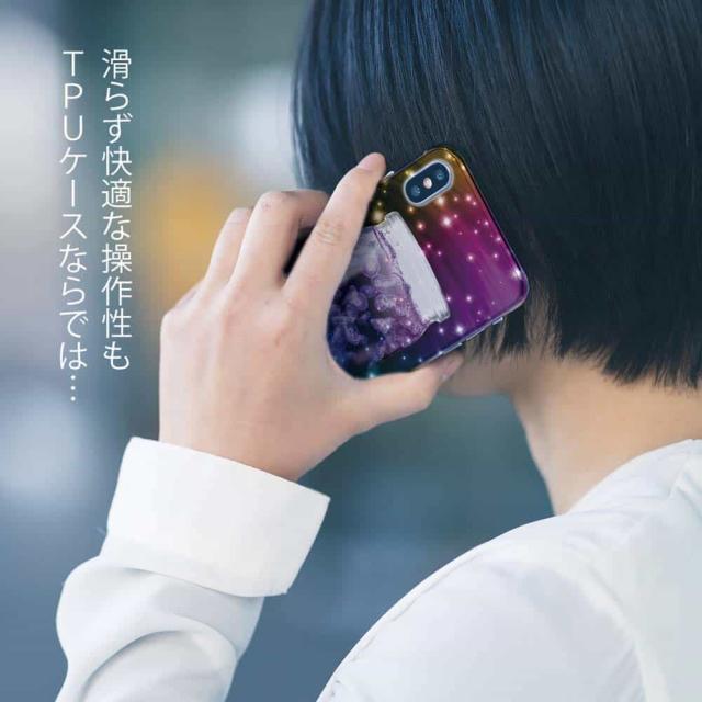 | ケースの素材について | 側面はゴムのように柔らかいTPU素材で、スマホ本体を守ります。万が一の落下でもケースが割れることがなく、耐久性の高いケースとなります。クリア(透明)のTPUケースにプリントしていますので、スマホ本体のカラーを活かしながらデザインケースが楽しめます。 |