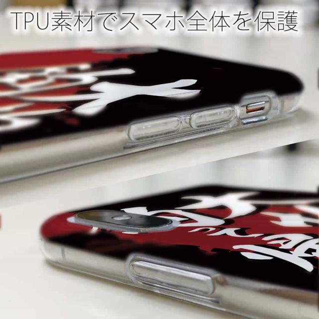 | ケースの素材について | 側面はゴムのように柔らかいTPU素材で、スマホ本体を守ります。万が一の落下でもケースが割れることがなく、耐久性の高いケースとなります。クリア(透明)のTPUケースにプリントしていますので、スマホ本体のカラーを活かしながらデザインケースが楽しめます。 |