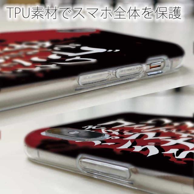 | ケースの素材について | 側面はゴムのように柔らかいTPU素材で、スマホ本体を守ります。万が一の落下でもケースが割れることがなく、耐久性の高いケースとなります。クリア(透明)のTPUケースにプリントしていますので、スマホ本体のカラーを活かしながらデザインケースが楽しめます。 |