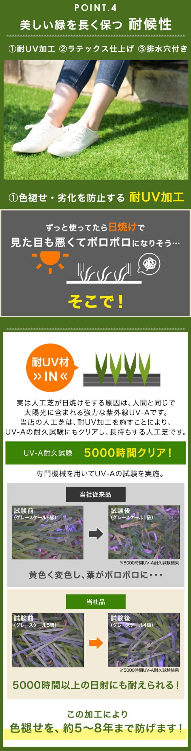 ※ 2022年9月29日から、葉形をより強度・耐久性の高いC型に、また、よりリアル感を出す為に密度を44万本/m?にリニューアルしました。それに伴い、色味や見た目が以前のものと若干変わっております。リニューアル以前にご購入いただいて、現在買い足しをご検討いただいているお客様は、ご注意いただくようお願い致します。