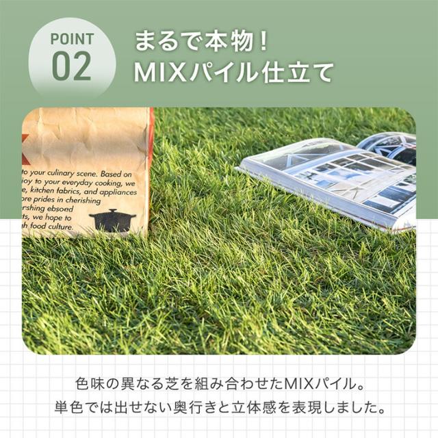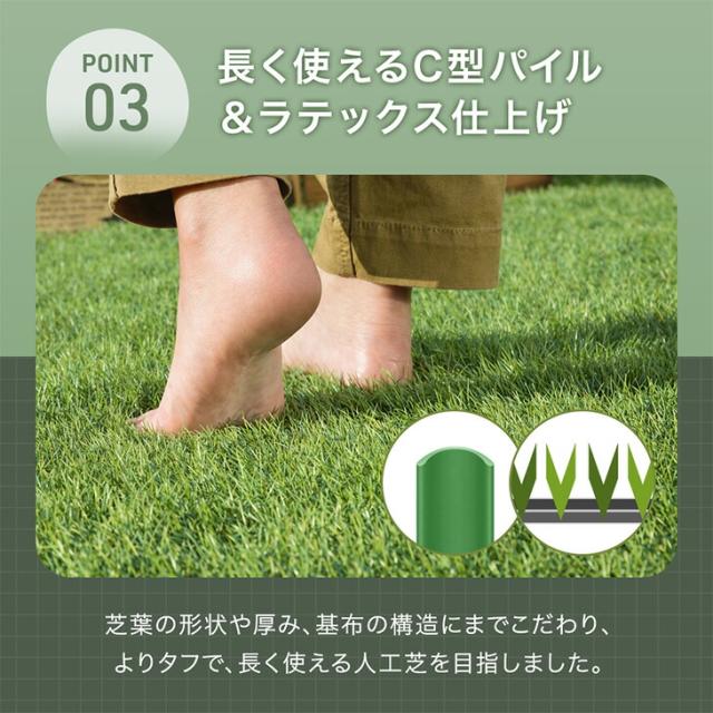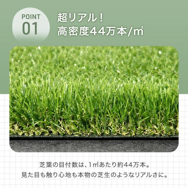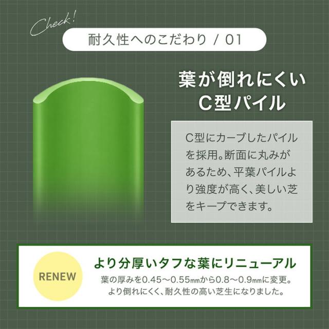 ※2022年9月29日、葉形をより強度・耐久性の高いC型に、密度を44万本/m2にリニューアルしました。それに伴い、色味や見た目が以前のものと若干変わっております。リニューアル以前にご購入いただいて、買い足しをご検討いただいているお客様は、ご注意いただくようお願い致します。