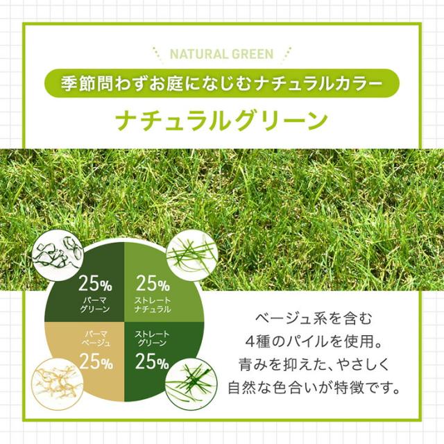 ※2023年12月21日、カラー名を変更しました。(夏色グリーン→フレッシュグリーン、春・秋色グリーン→ナチュラルグリーン)芝の色味に変更はございませんが、買い足しをご検討いただいているお客様はご確認のほどよろしくお願いいたします。