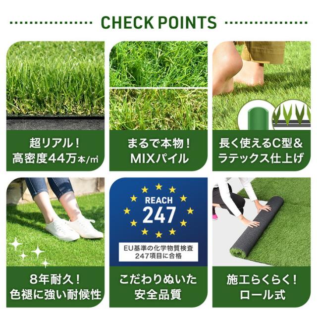 人工芝 ロール 高密度44万本/m2 リアル人工芝 U字ピン 48本 セット 芝 ペット ドッグラン 人工芝 芝丈35mm 10m 芝生ドッグラン マット ベランダ バルコニー 高耐久 庭 防草 耐久 [超大型商品]【商品番号:50900020】