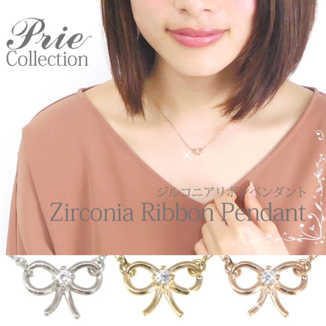 金アレ対応 ステンレスペンダント prie ジルコニアリボンペンダント シルバー ゴールド ローズゴールド 引き輪 ステンレスペンダント 安心 316L ネックレス 母の日 ギフト プレゼント