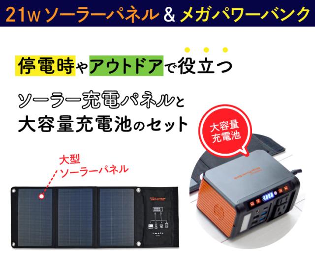 ポータブル電源 ソーラーパネル&メガパワーバンク 大容量 蓄電池 充電池 バッテリー 折りたたみ スマホ充電 防災 停電 キャンプ 送料無料