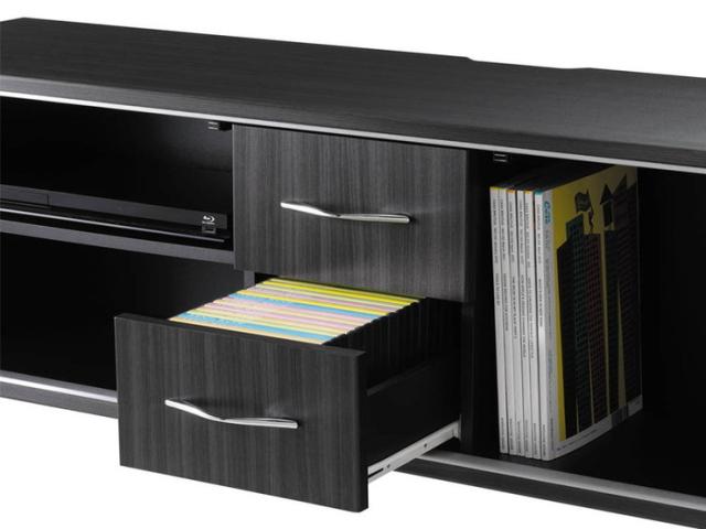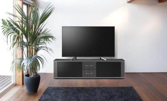 この収納性ですっきり片付いてこそ上質が際立つ。テレビ〜65Vまで対応。