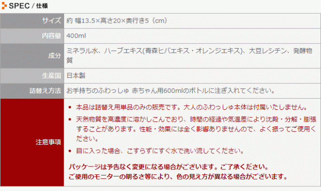 ミネラル水、ハーブエキス(青森ヒバエキス・オレンジエキス)、大豆レシチン、発酵物質