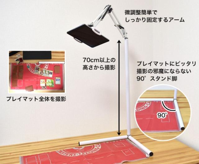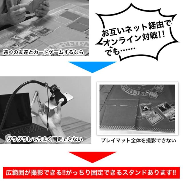 ■例えばカードゲームをオンラインで友人と楽しみたい!撮影しながらSkypeで会話すれば距離があっても楽しめる!!真上から撮影できて背の高いスマートフォン・タブレットスタンドです!