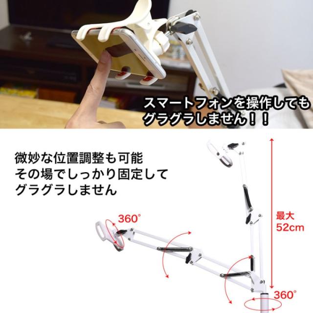 ■スマホもタブレットも取付可能なロングポールスタンド。