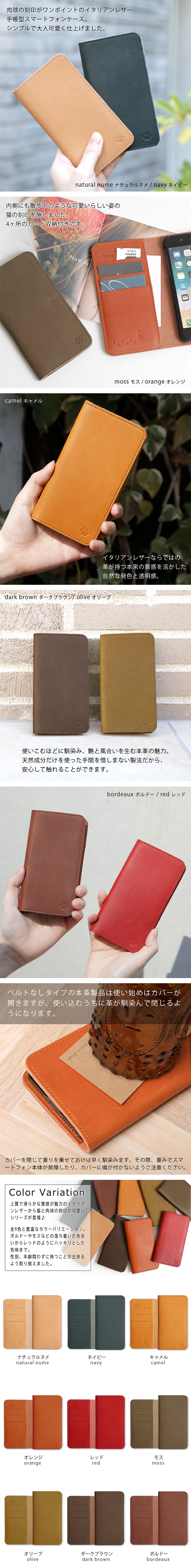■洗練された色彩が特徴の、イタリアンレザーを贅沢に使用した手帳型スマホケース