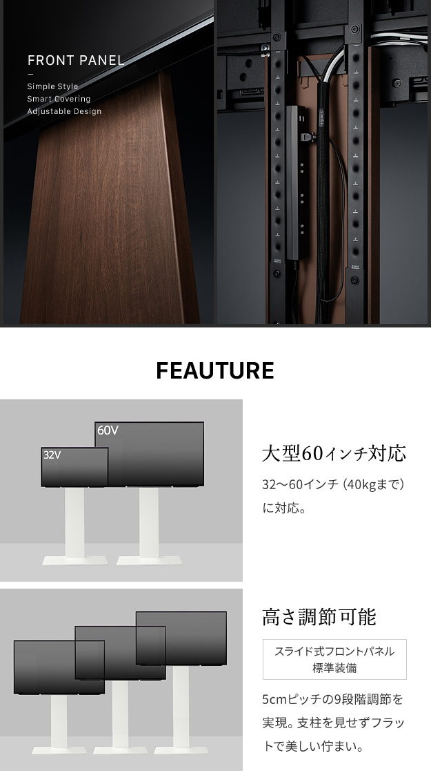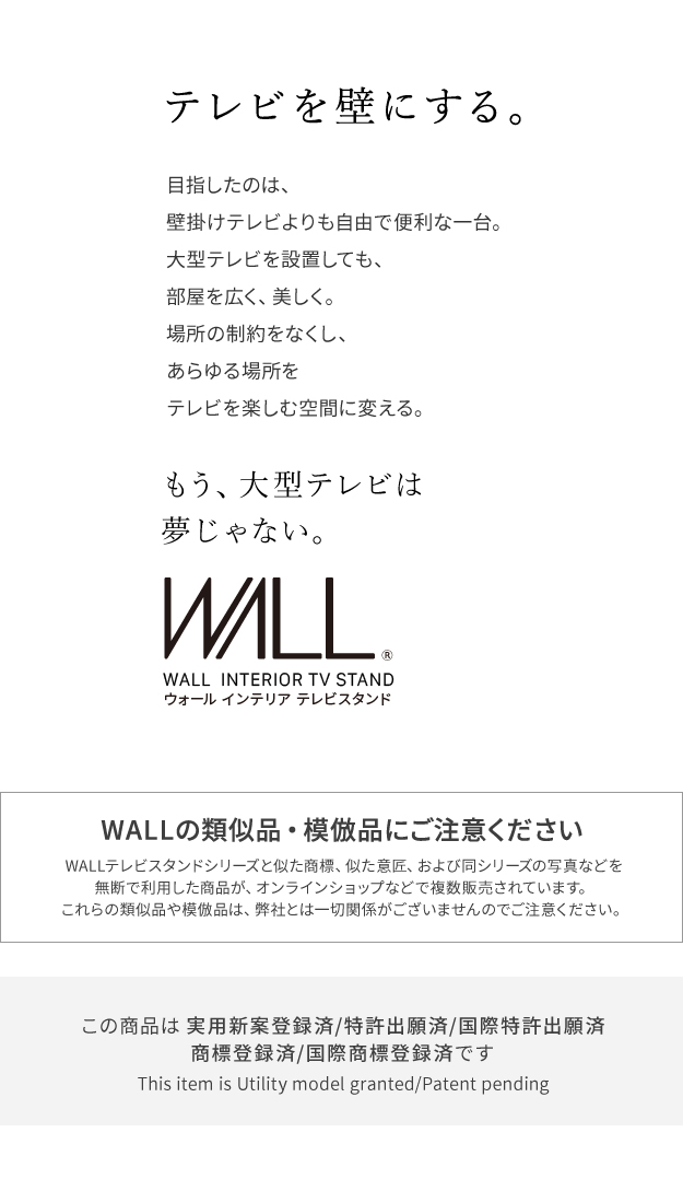 【震度7耐震試験済み/32〜60インチ対応】WALL(ウォール) 壁寄せTVスタンド V2 ハイタイプ 3色対応 テレビ 工事不要 テレビスタンド 壁寄せタイプ リビング ディスプレイ グッドデザイン賞受賞
