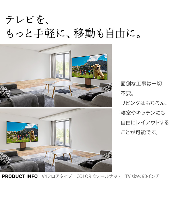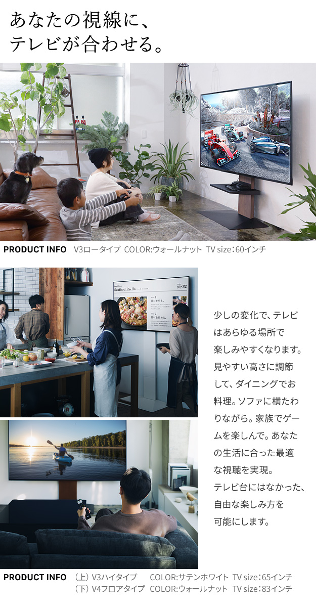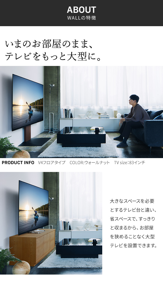 【震度7耐震試験済み/32〜60インチ対応】WALL(ウォール) 壁寄せTVスタンド V2 ロータイプ 3色対応 テレビ 工事不要 テレビスタンド 壁寄せタイプ リビング ディスプレイ グッドデザイン賞受賞