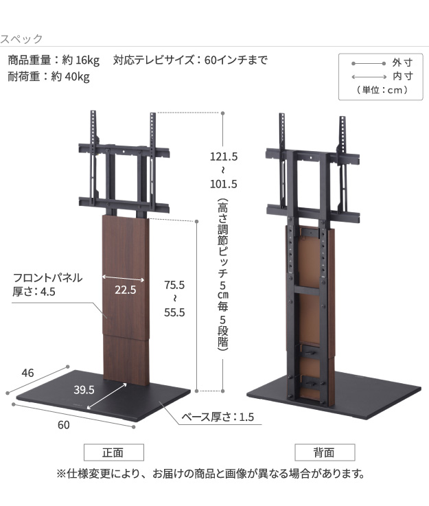 W60 × D46 × H101.5〜121.5cm