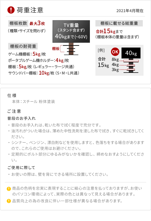 ※60インチ以下でも40kgを超過するテレビにはお使いいただけません。