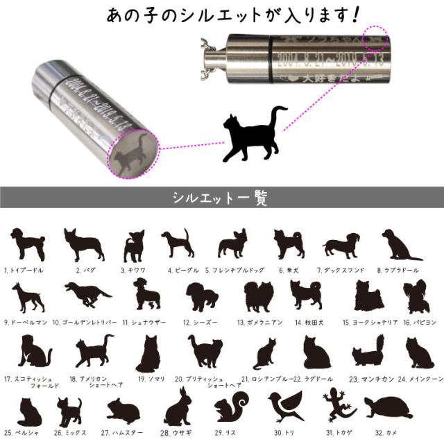 ペット 遺骨ペンダント 刻印入り ステンレス 生活防水 メモリアルペンダント ネックレス シルエット入り new イラスト 分骨 遺骨入れ 骨壺犬 猫 ペット供養 ペットロス メモリアル 手元供養 名前と想いを刻印