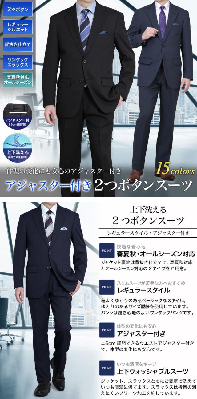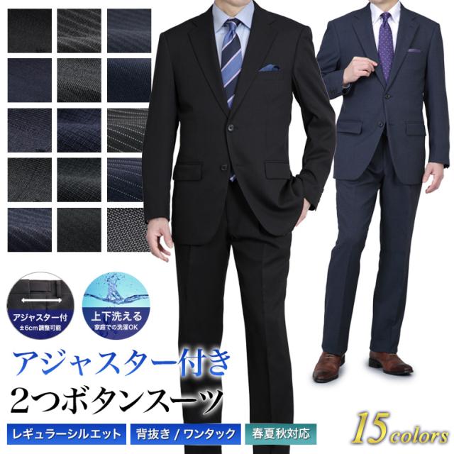 スーツ メンズ アジャスター付き 2つボタン 背抜き仕立て 上下洗える ワンタック スラックス ビジネス 春夏秋 オールシーズン ゆとり レギュラーフィット A4-A8/AB4-AB8/BB4-BB8/E4-E8