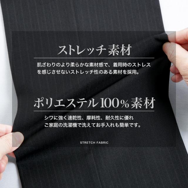 なめらかな手触り・シワや虫喰いに強い新素材を使用、繊維技術の進化を実感できるお手頃価格のスーツ。細身のスーツが苦手な方にお薦め、ゆとりのあるサイズ型紙を使用しています。上下ともにご家庭で水洗いでき、いつも清潔に保てます。ウエスト調節アジャスター(±6cm)が付いているので、 体型の変化にも対応できて安心です。