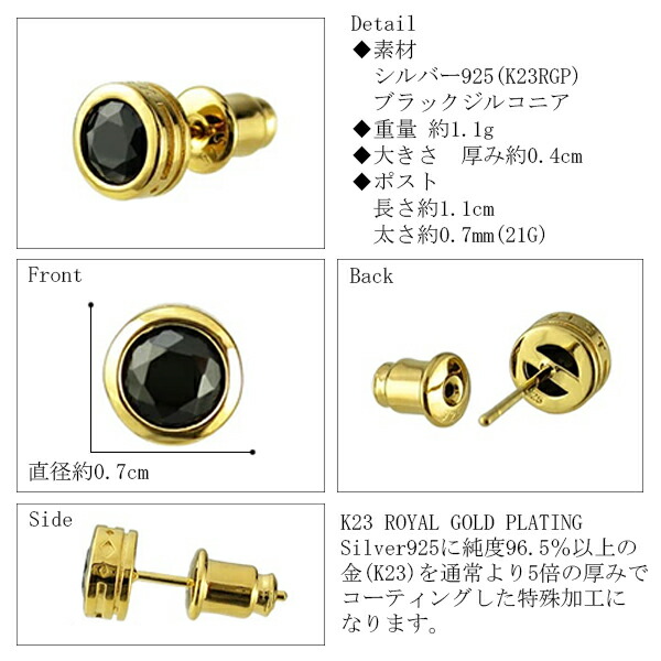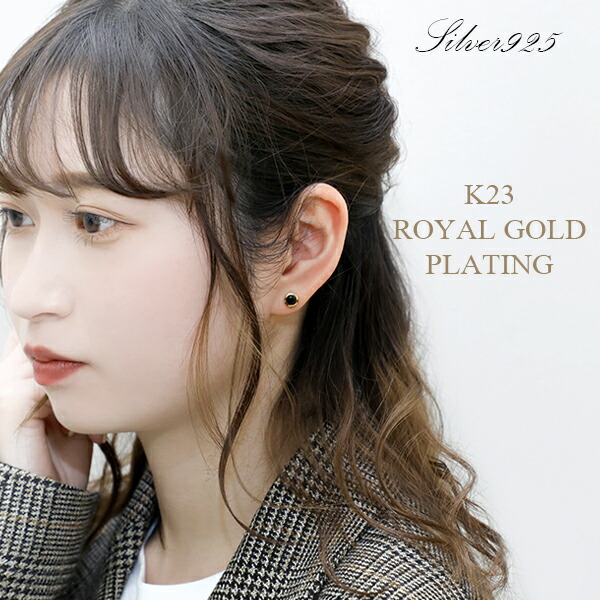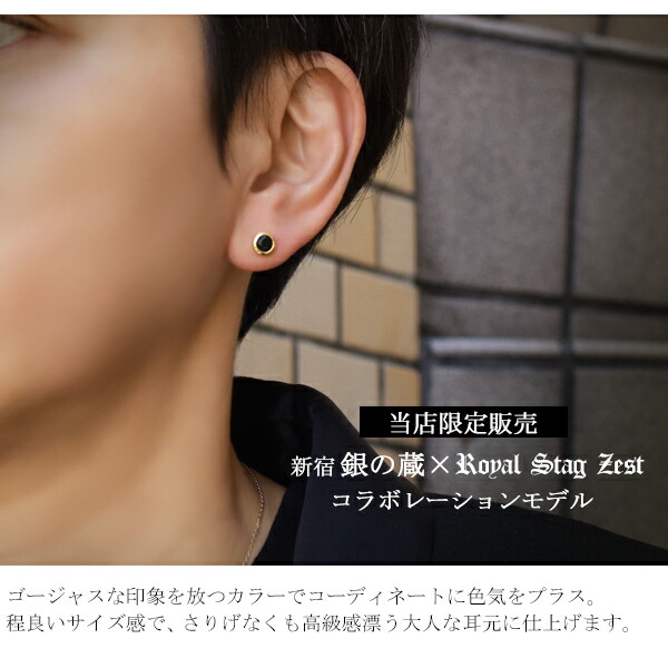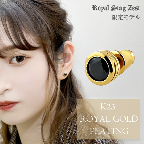K23 ロイヤルゴールドプレーティング 限定 ブラック ラウンド 一粒 スタッドピアス 1P 片耳用 ゴールドカラー 23金 ブランド Royal Stag ZEST ロイヤルスタッグ