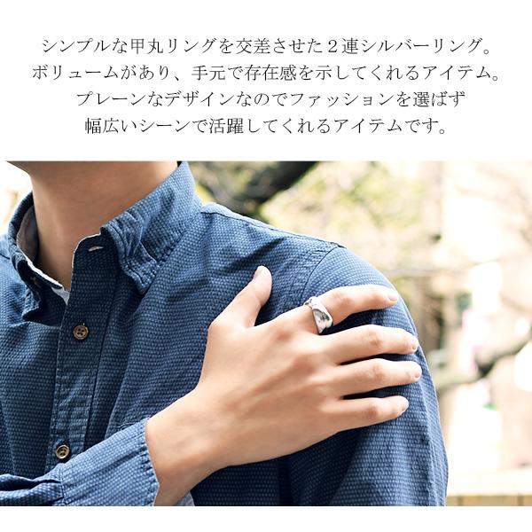 シンプルな甲丸リングを交差させた2連シルバーリング。