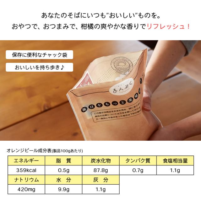 原材料名 オレンジ皮、砂糖、酸味料(クエン酸)、保存料(亜硫酸塩)※本品製造工場では小麦、卵、乳成分、落花生、えび、かに、いか、カシューナッツ、くるみ、アーモンド、ごま、大豆、バナナ、オレンジ、キウィフルーツを含む製品を製造しております。
