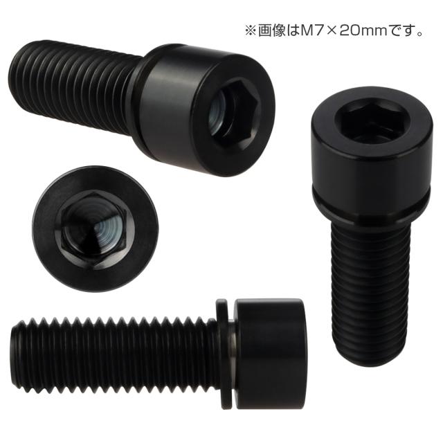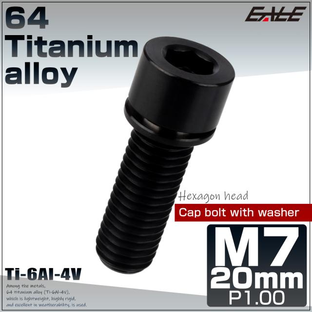 チタンボルト M7×20mm P1.0 ステムボルト キャップボルト 六角穴 ワッシャー付き ブラック JA716