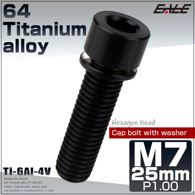 チタンボルト M7×25mm P1.0 ステムボルト キャップボルト 六角穴 ワッシャー付き ブラック JA721