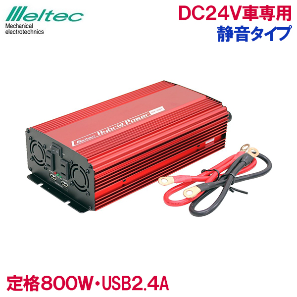 メルテック インバーター カーインバーター 24V 800W SIV-1001 バッテリー接続 静音 コンセント USB 車内 電源 充電器 スマホ タブレット iPhone iPad 充電