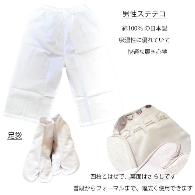 肌襦袢 ステテコ 足袋 メンズ 3点 セット 肌着 男性 はだじゅばん ブロード 着物 和装 用