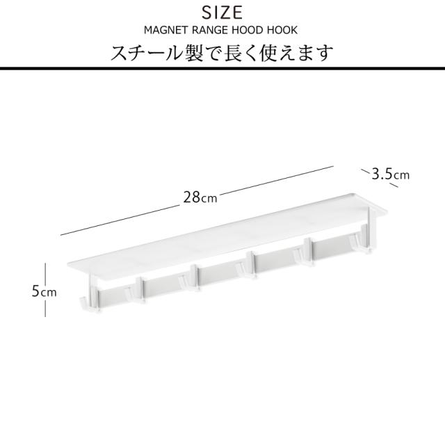 レンジフードのスチールカバー面に(整流板)マグネットで簡単取り付けのキッチンツールフック。