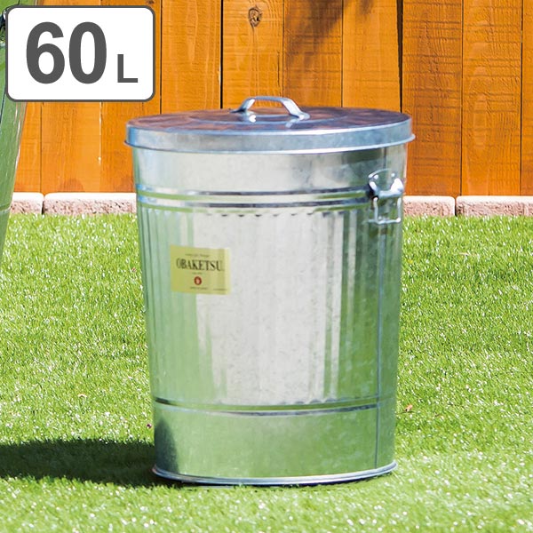 ゴミ箱 60L オバケツ ふた付き ( OBAKETSU ダストボックス 収納 トタン おしゃれ レトロ ごみ箱 大容量 屋外 大型 60リットル フタ付き 大きい 屋内 外用 丈夫 丸型 シルバー 金属製 ゴミ箱 ふた付き ゴミ箱 おしゃれ)