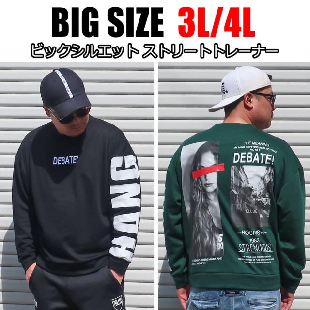 【送料無料】 大きいサイズ スウェット スエット 3L 4L XL XXL XXXL 黒 ブラック グリーン パープル ガールズフォト 裏毛 クルーネック トレーナー ストリート ビックシルエットゆったり カジュアル ビックサイズ プリント 大人30代 40代 50代
