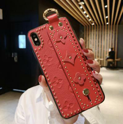 LAZA 【レッド】レザーケース リストバンドリングブラケット スタイリッシュ フラワーモチーフ ソフトエッジ
