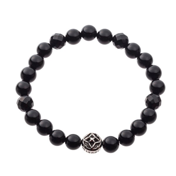 深いブラックが静かな気迫を宿す、オニキスビーズブレスレット。均整のとれたラウンドに、ところどころ配したカットビーズが微細な反射を生み、手元にシャープなリズムを刻みます。センターにはトレサリーとロゴを精緻に刻んだメタルビーズをセット。ミニマルな構成にブランドの存在感を品よく添え、単品はもちろん時計やチェーンとのレイヤードでも装いを引き締めます。オニキスは古来、雑念やネガティブな気配から身を守り、前へ進む力を与える石と伝えられるもの。選び抜いた素材を、提携アトリエの手仕事で一連ずつ丁寧に組み上げ、着け心地の良い弾性と耐久性を両立しました。日常にさりげなくモードを差し込む、洗練のブラックアクセント。性別やスタイルを越えて、装いの完成度を一段引き上げる一本です。