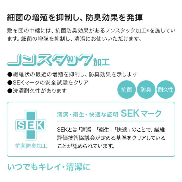 ノンスタック 四層敷布団 セミシングル 選べるサイズ 日本製 ボリューム 敷布団 抗菌防臭