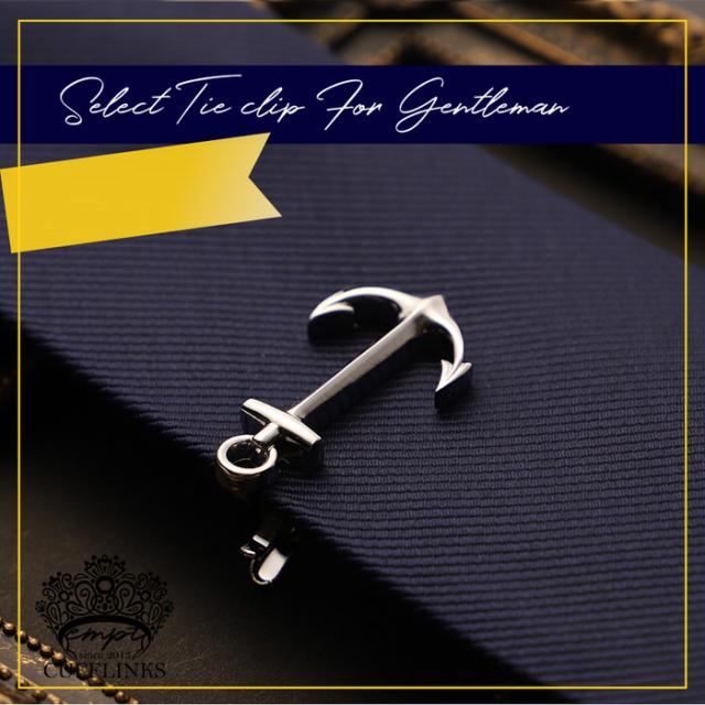 タイピン いかり 碇 船モチーフ シルバー | カフスボタン カフリンクス カフスリンクス カフス 銀 メンズ 大人の男 結婚式 パーティー 付け方