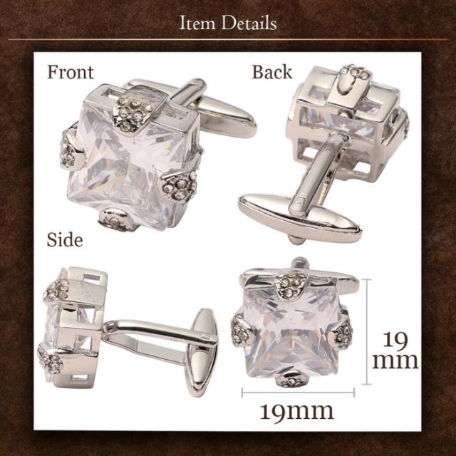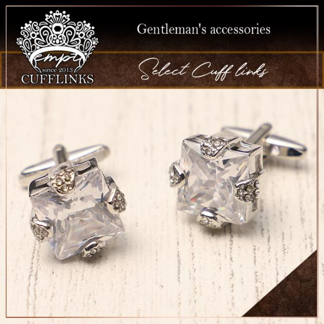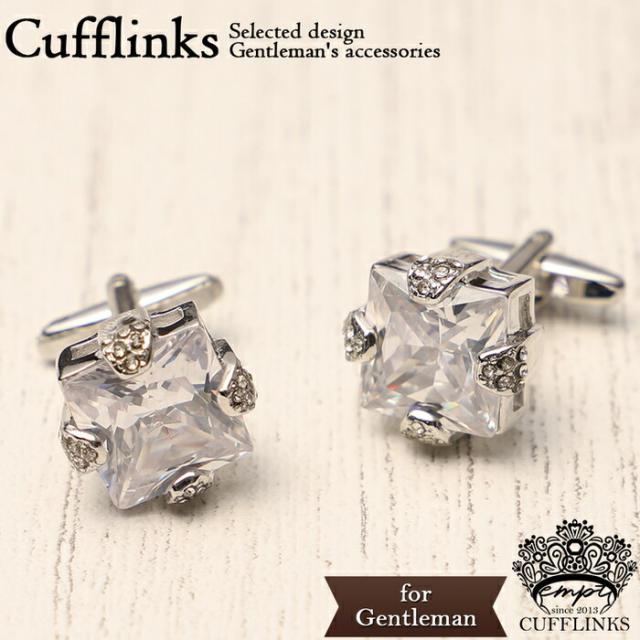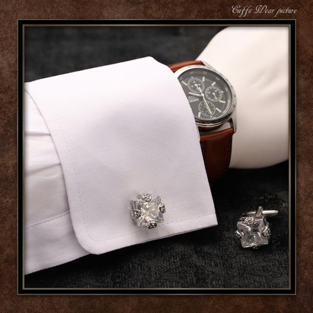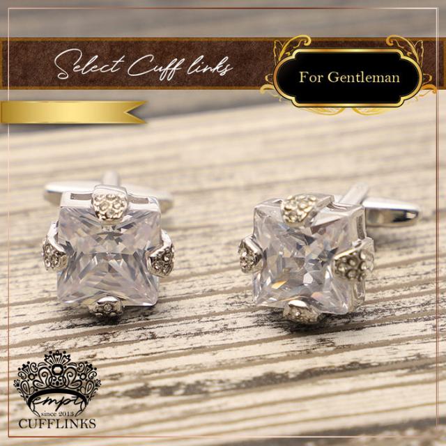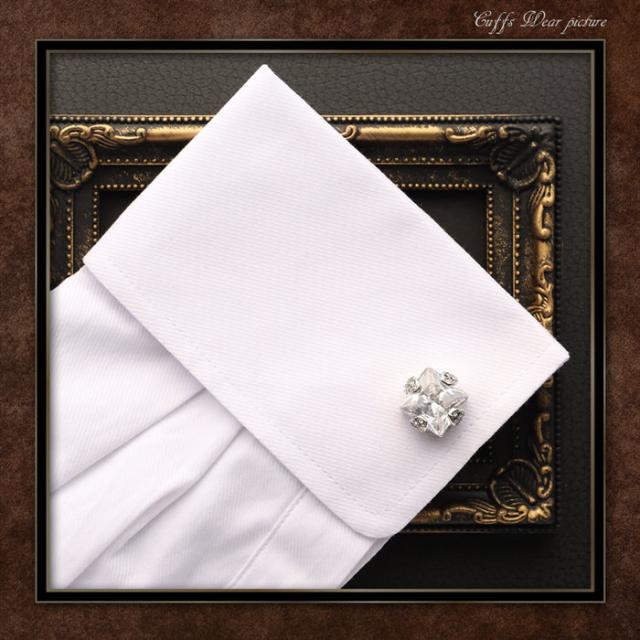 カフス スクエア ビッグ カットストーン シルバー | カフリンクス カフスリンクス カフス カフスボタン ビック メンズ 付け方 結婚式 おしゃれ 銀 大きい 豪華 ブライダル 紳士 ビジネス プレゼント 彼氏 人気
