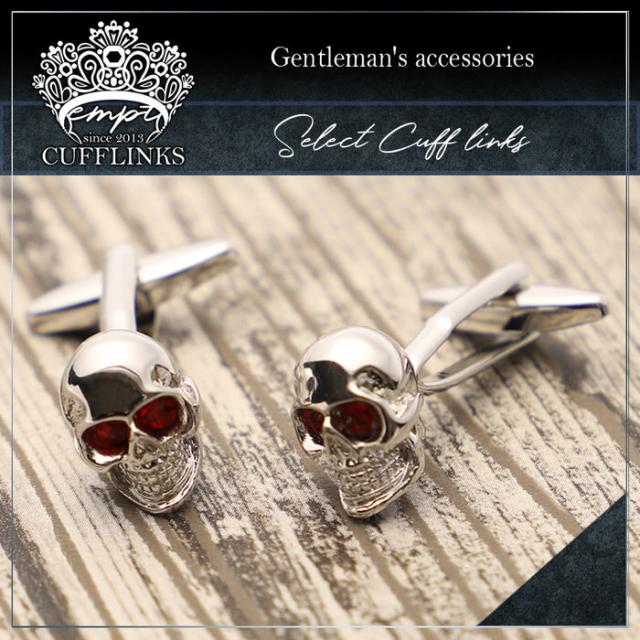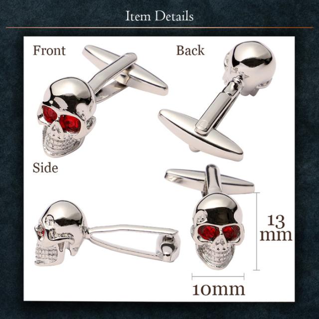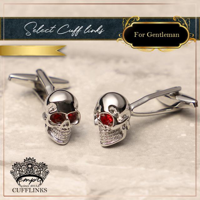 カフス ドクロ 髑髏 骸骨 レッドアイ | カフリンクス カフスリンクス カフス カフスボタン シルバー メンズ 男 結婚式 誕生日 使い方