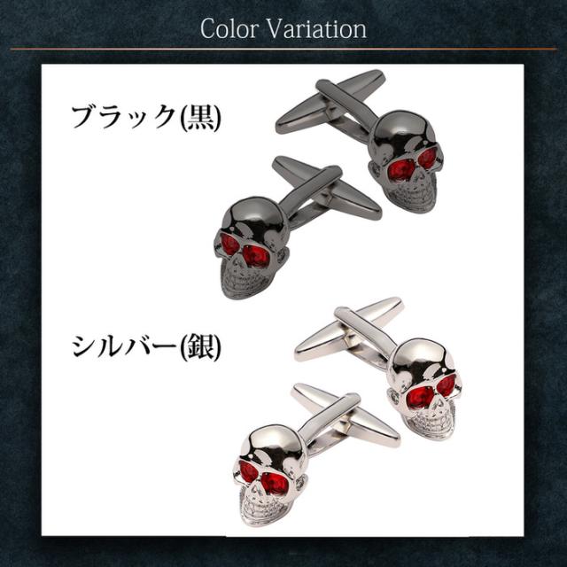 カフス ドクロ 髑髏 骸骨 レッドアイ | カフリンクス カフスリンクス カフス カフスボタン シルバー メンズ 男 結婚式 ブラック スカル レッド 赤 おしゃれ フォーマル 誕生日 使い方