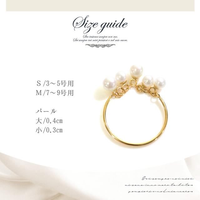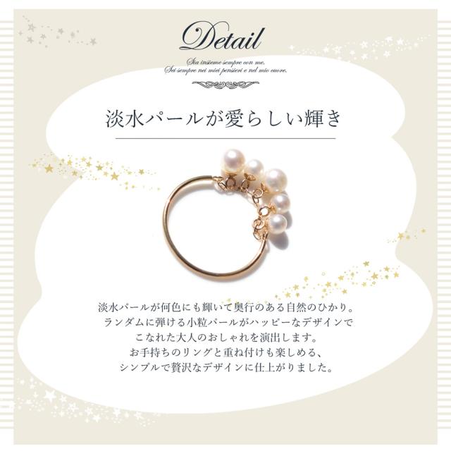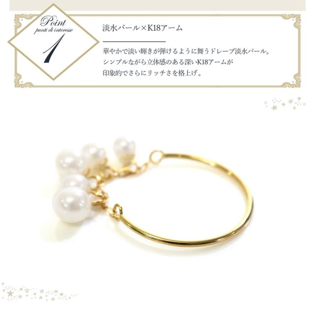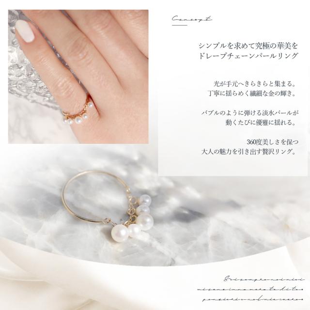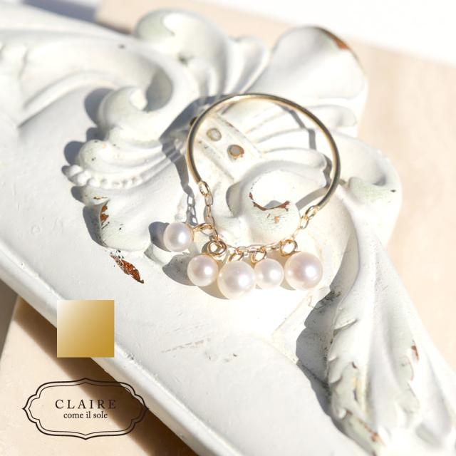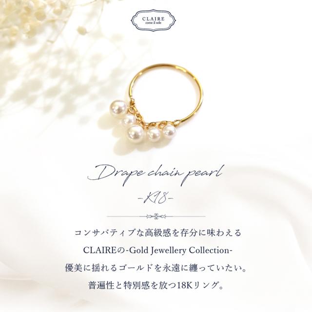 リング 18k パール 18金 フェザーカット ドレープ チェーン C型 パールリング レディース CLAIRE かわいい おしゃれ 結婚式 卒業式 入学式 卒園式